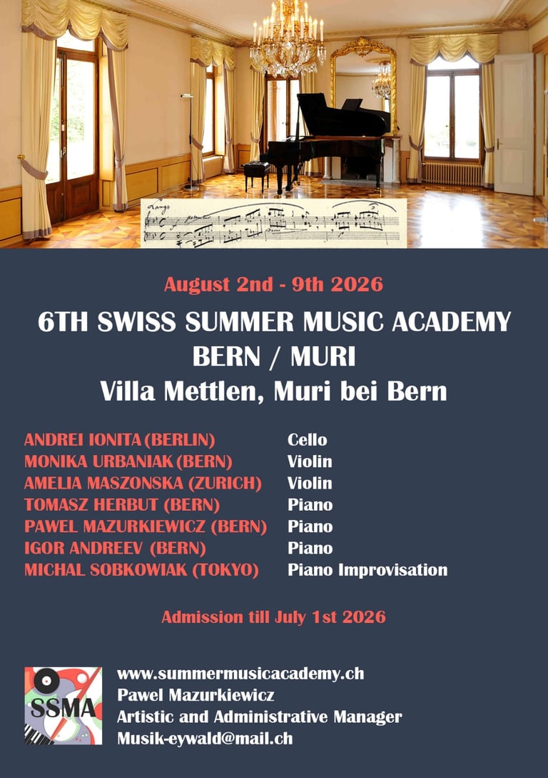 Next Summer Music Academy Bern: 02 - 09.8.2026